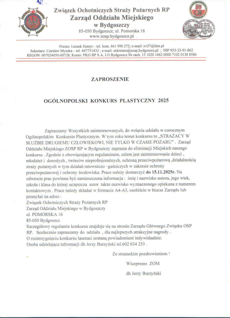 Zapraszamy na XXXIII Bydgoskie Zawody Sportowo – Pożarnicze, OSP i KDP oraz na XX Bydgoskie Zawody MDP które odbędą się w dniu 13 września 2025 roku o godz.10.00 w Myślęcinku przy przystanku kolejki wąskotorowej. Zadanie realizowane jest w ramach Konkursu Miasta Bydgoszcz na wykonanie zadań publicznych w zakresie działalności na rzecz ochrony ppożarowej !