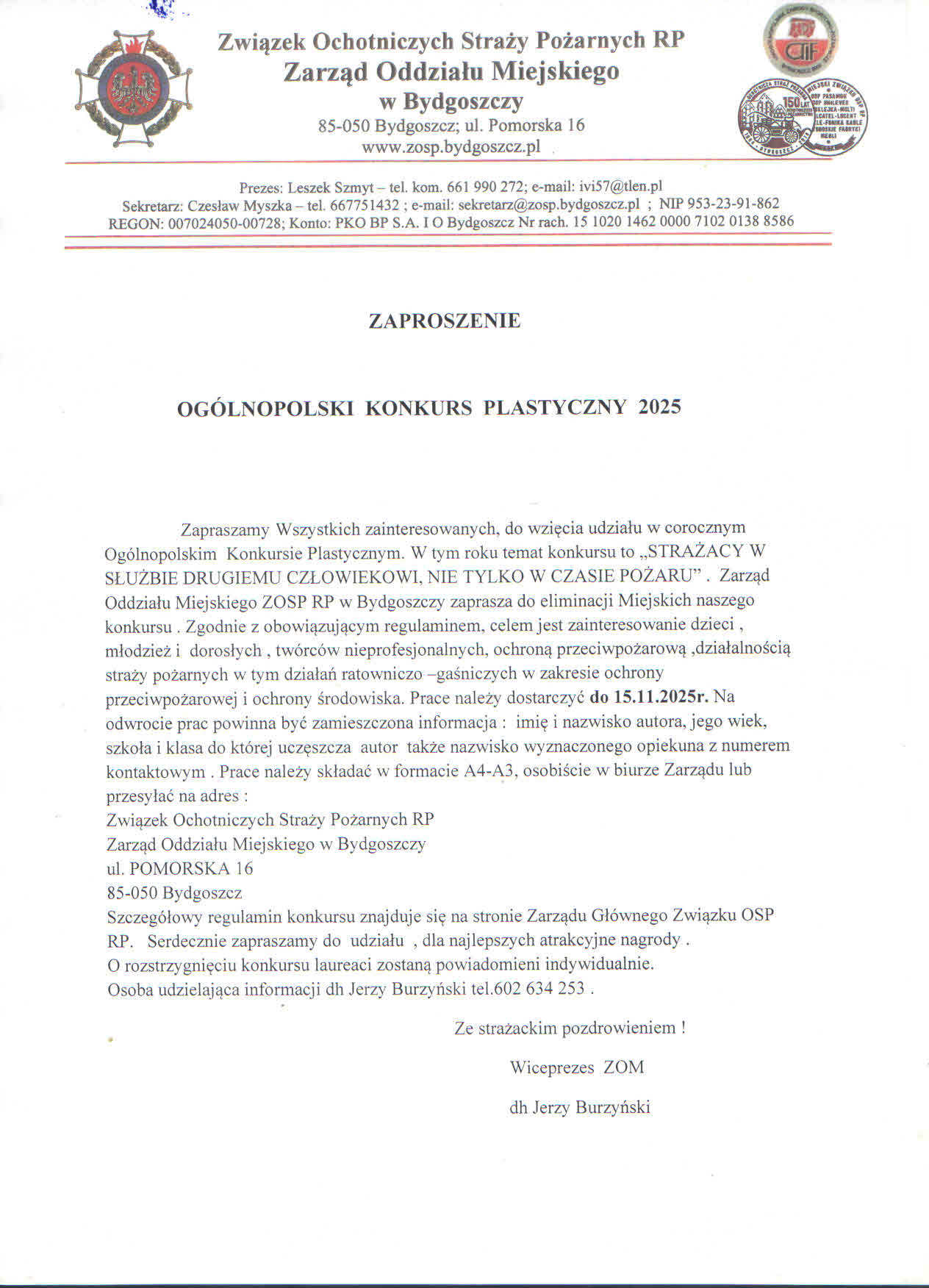 Zgłoszenia na dedykowanym arkuszu przyjmujemy do dnia 6 września br. – kontakt: dh Wojciech Kowalczyk – e-mail: wojciechkowalczyk@onet.eu, tel. 600 625 607.