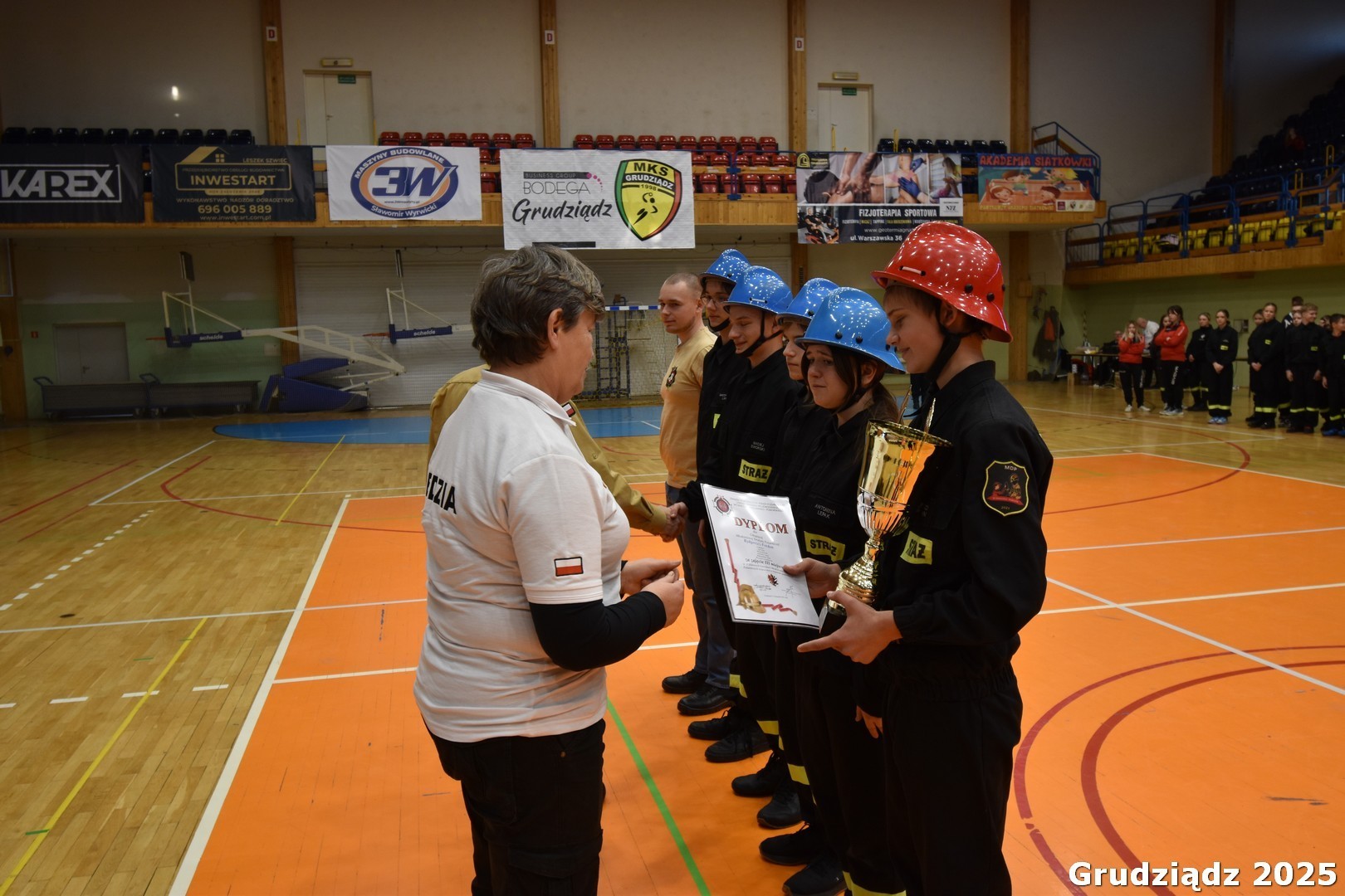 Nadszedł najprzyjemniejszy moment dla drużyn które znalazły się na podium w kategorii dziewcząt za I miejsce , Puchar , dyplom , medale i nagrody rzeczowe dla drużyny MDP OSP Suchorączek wręczyli przedstawiciel Pana Marszałka Pan Tomasz Grędzicki i Członek ZOW dh Wiesław Ziółkowski , za II miejsce dla MDP Samsieczynek nagrody przekazali Starosta Grudziądzki Pan Adam Olejnik wraz z Członkiem ZOW dh Sławomirem Chyłą za III miejsce MDP z Nieżywięcia odebrała nagrody z rąk Wiceprezesa ZOW dh Jerzego Fydrycha . Dekoracje wśród chłopców , I miejsce MDP Wola Wapowska Puchar , medale i nagrody przekazał wicewojewoda Piotr Hemerling i wiceprezes ZOW dh Leszek Szmyt , II miejsce to MDP Drążno Nagrody wręczył Prezydent Grudziądza Pan Maciej Glamowski za III miejsce dla MDP Bydgoszcz – Fordon wyróżnienia wręczył Zastępca Komendanta Wojewódzkiego PSP st. bryg. Marek Rusoń i Sędzina Główna Zawodów dh Ewa Szmyt . Puchary i maskotki dla najlepszej Zawodniczki i Zawodnika Zawodów wręczył Wicestarosta Grudziądzki Pan Marcin Dziadzio .